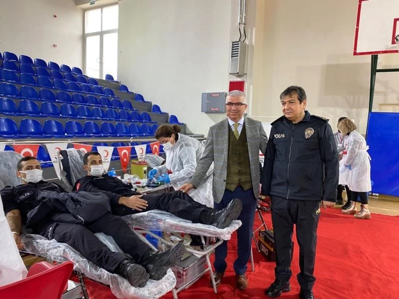 Kızılay Genel Merkez Yönetim Kurulu Üyesi Ramazan Saygılı ve Kemal Serhadlı Polis Meslek Eğitim Merkezi Müdürü Rüştü Yılmaz öncülüğünde gerçekleştirilen etkinlikte, halkın huzuru ve güvenliği için gece gündüz çalışmayı göze alarak eğitim gören polis adayları, kan bağışına yoğun ilgi gösterdiler.