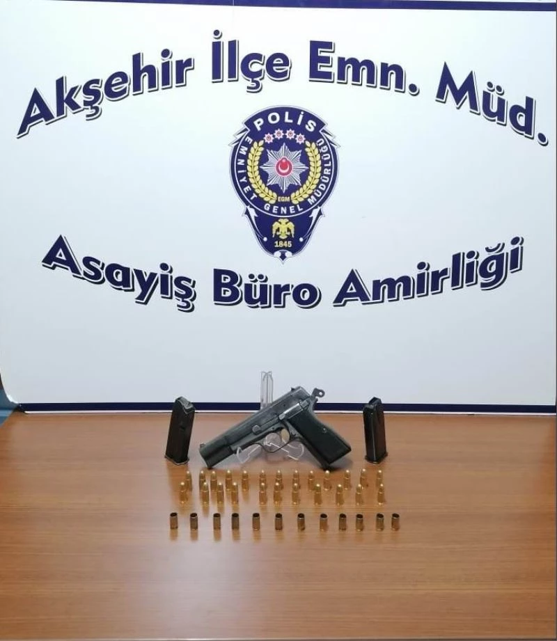 Edinilen bilgiye göre, Seyran Mahallesi Sanayi Caddesi üzerinde havaya ateş edildiği ihbarını değerlendiren Akşehir İlçe Emniyet Müdürlüğü Asayiş Büro Amirliği ekipleri, sanayi içerisinde bir araçtan havaya ateş eden B.T.’yi yakalayarak gözaltına aldı. Araçta yapılan aramada suç aleti ruhsatsız tabanca ve tabancaya ait 2 adet şarjör, 24 dolu mermi ve 12 boş kovan ele geçirildi. Şüpheli B.T., ifadesinin ardından savcılık talimatıyla serbest bırakılırken, tabanca, şarjör mermiler ile boş kovanlara el konuldu.