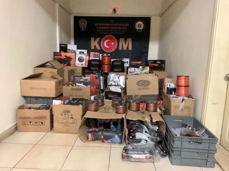Olay Afyonkarahisar-İzmir karayolu üzerinde meydana geldi. Edinilen bilgilere göre, kent girişinde uygulama noktası oluşturan ekipler ticari bir aracı durdurarak arama yaptı. Aramalarda araç içerisinde gümrük kaçağı olduğu öğrenilen 446 adet çeşitli markalarda hoparlör, 96 adet teyp, 26 adet amfi ve güç kaynağı, 157 adet uydu alıcısı ve LNB, 785 adet kablo, 120 adet kumanda, 25 adet Geri görüş kamerası ele geçirildi. Olayla ilgili 2 kişinin gözaltına alındığı bildirildi.