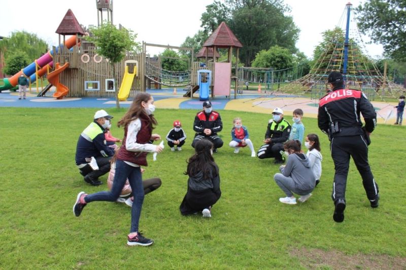 Sakarya İl Emniyet Müdürlüğü ekipleri, sokağa çıkan çocuklarla oyun oynayarak onlara keyifli dakikalar geçirtti.