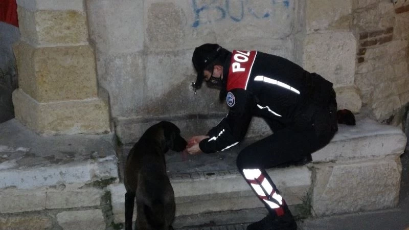 Polis ekipleri, eksi 10 derecede sokak hayvanlarını unutmadı