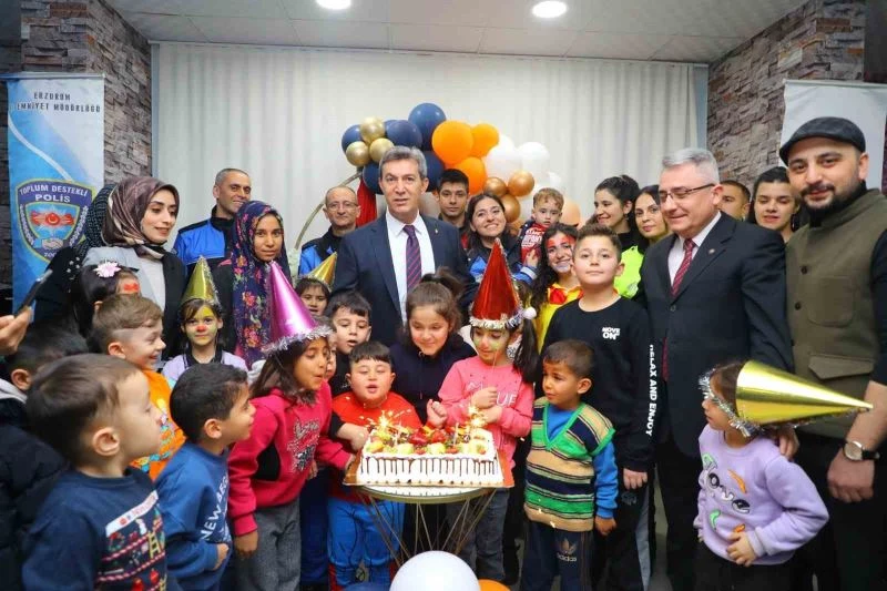 Erzurum Emniyet Müdürlüğü tarafından düzenlenen etkinlikte polis ekipleri depremzede aile ve çocuklarla bir araya geldi. Etkinlikte depremzede çocuğun ‘pasta istiyorum doğum günümü kutlayalım’ ricasını kırmayan ekipler tarafından doğum günü pastası kesildi.