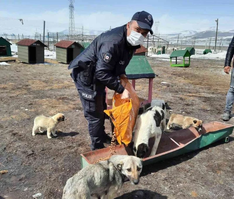 Polis haftası etkinlikleri çerçevesinde ekipler, kentin belirli bölgelerinde hayvanların beslenebilmesi için yem ve mama bıraktı.