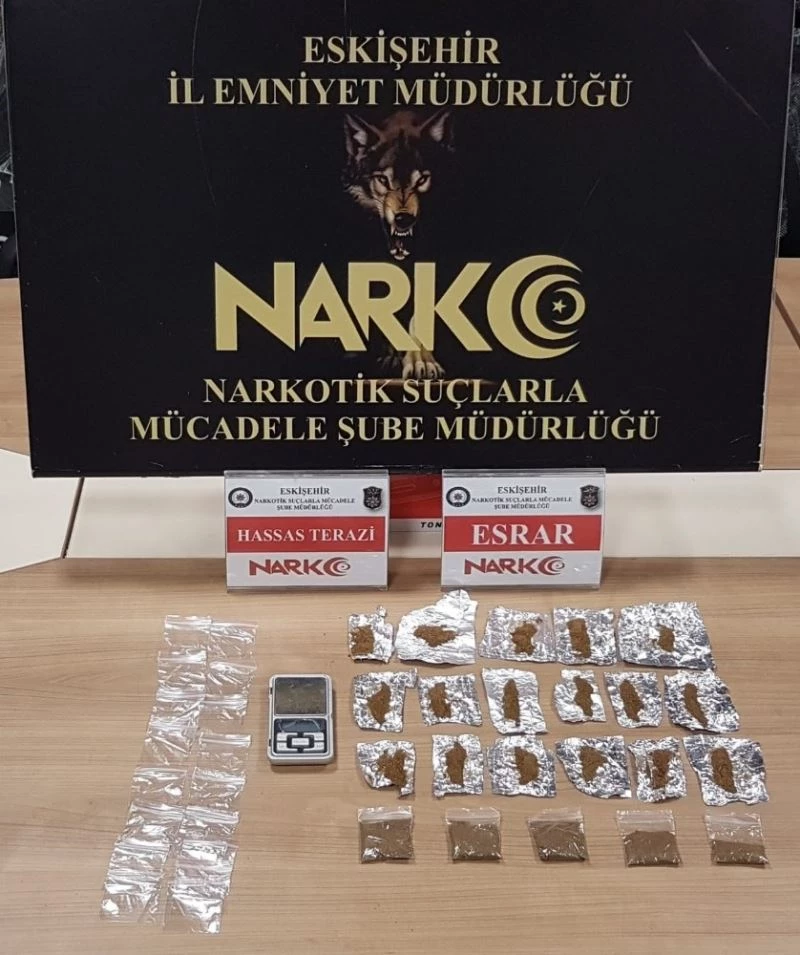 Eskişehir’de polis ekipleri tarafından yapılan operasyonda, 23 çıkı halinde satışa hazır 28,68 gram gelen esrar ve 1 adet hassas terazi ele geçirildi.