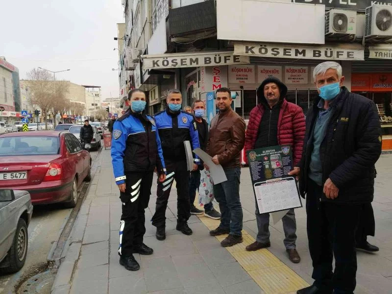 Kahramanmaraş’ın Elbistan ilçesinde polis ekipleri, üzerinde uyuşturucu ile mücadele, kadına yönelik şiddet, dolandırıcılık ve hırsızlık konuları ile ilgili bilgi içeren takvimleri, vatandaşlara dağıttı.
