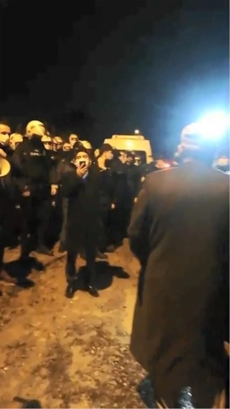Dernek üyelerinin araçları ile mezara giden yolun kapatılması sonrasında olay yerine çok sayıda çevik kuvvet polisi sevk edilerek araçların kaldırılması için çalışma başlatıldı.