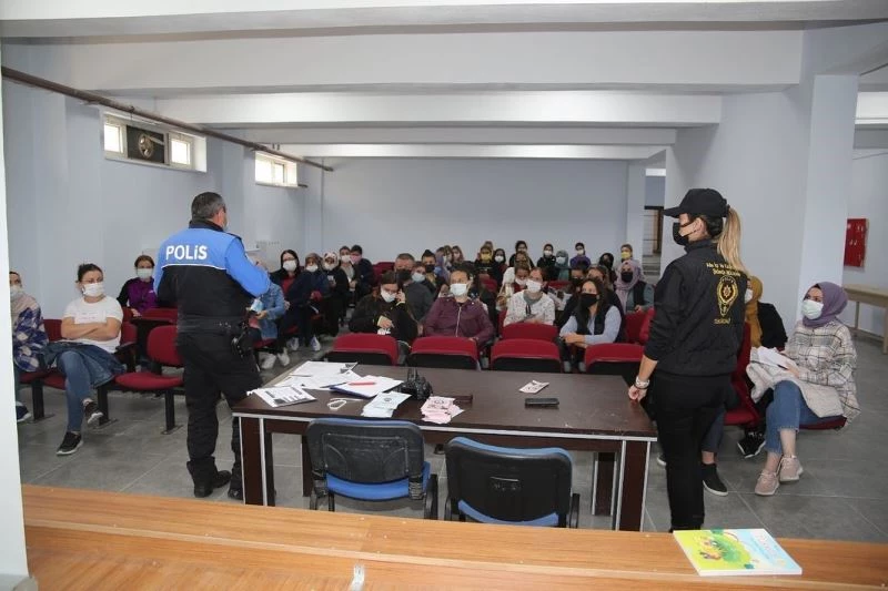 Ayrıca öğrencilerin ve velilerin pandemi ile ilgili olarak maske, sosyal mesafe ve hijyen konusunda azami dikkat etmeleri hatırlatıldı. Katılımcılara malvarlığına karşı işlenen suçlar, KADES ve dolandırıcılık konulu broşürler dağıtıldı.