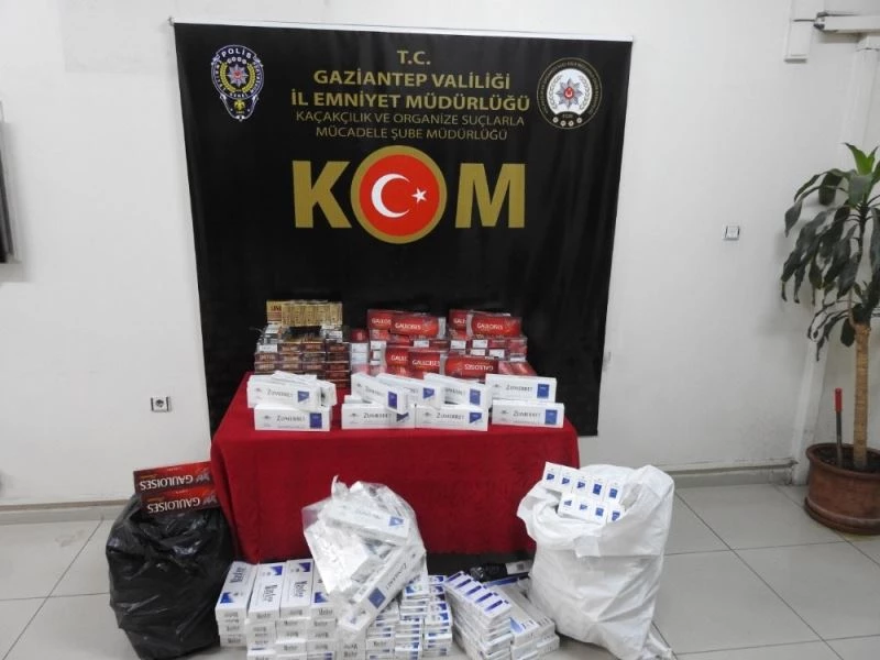 Gaziantep Emniyet Müdürlüğüne bağlı KOM Şube Müdürlüğü ekipleri Gaziantep merkezli Kahramanmaraş ve Şırnak illerinde eş zamanlı kaçak sigara operasyonu yaptı. Ekipler yapılan operasyonlar sonucu Gaziantep’te 8, Kahramanmaraş ilinde 1 ve Şırnak ilinde de 1 şahıs olmak üzere toplam 10 şahıs yakalayarak gözaltına aldı. Ekipler ayrıca 26 bin paket gümrük kaçağı sigara, 2 bin litre motorin, 1 adet santrifüj, 2 adet fiber tank ele geçirdi. Olayla ilgili gözaltına alınan 10 şüphelinin yasal işlemleri devam ediyor.