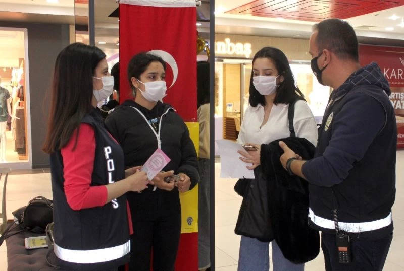 Mersin’in Erdemli İlçe Emniyet Müdürlüğü tarafından alışveriş merkezlerinde açılan stantla, aile içi ve kadına yönelik şiddetle mücadele kapsamında hayata geçirilen Kadın Acil Destek (KADES) uygulamasının tanıtımı yapıldı.
