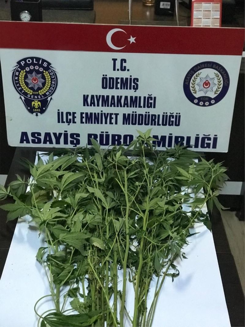 Ödemiş İlçe Emniyet Müdürlüğü Asayiş Büro Amirliği ekipleri ilçe genelinde uygulamalar yaptı. Ekipler Demirel Mahallesi’nde bulunan zeytinlik arazide ekili 22 adet Hint keneviri bitkisi ele geçirdi. Olayla ilgili M.Ç. isimli şahıs gözaltına alındı.