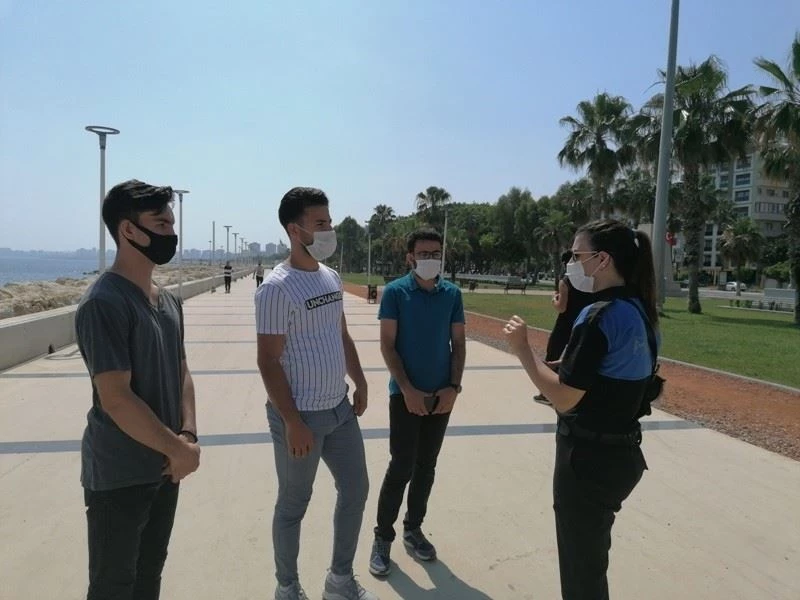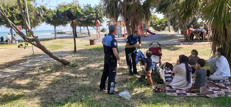 Mersin’de yeni normalleşme sürecinde parklara ve sahillere giden vatandaşlar, polis ekiplerince sosyal mesafe ve maske kullanımı konusunda bilgilendirildi.