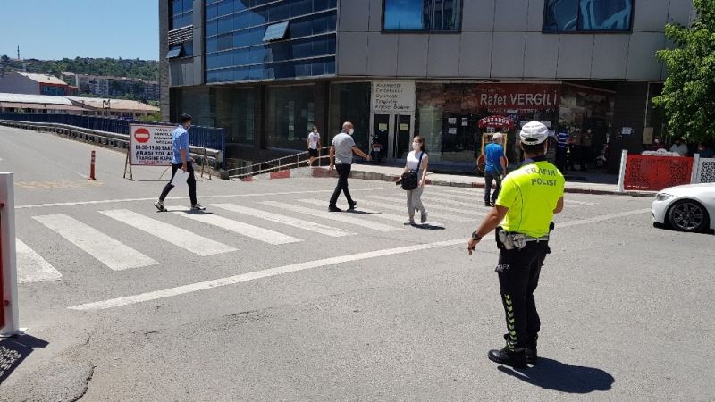 Kiminin telefonla konuştuğu için, kiminin de dalgınlıkla kural ihlali yaptığı kavşakta, polis memuru vatandaşları yanına çağırarak ‘Can güvenliğiniz için’ diyerek yaya geçidini kullanmalarını konusunda sürekli uyardı. Polisin kendilerini durdurmasına şaşıran bazı vatandaşların özür dilediği görüldü.
