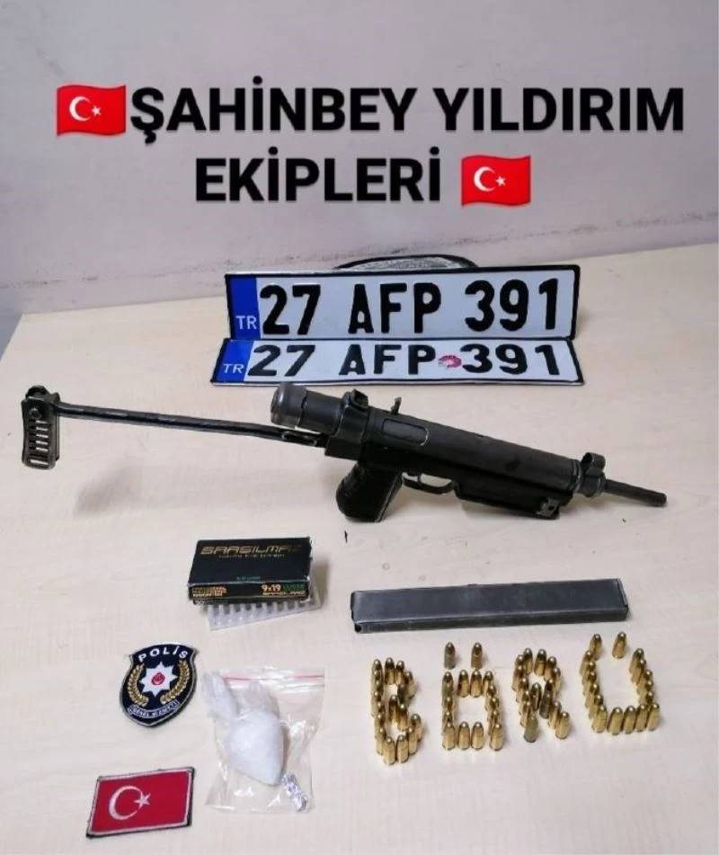 Gaziantep Emniyet Müdürlüğüne bağlı, Şahinbey İlçe Emniyet Müdürlüğü ekiplerince yapılan uygulamada polisin dur ihtarına uymayarak kaçan araç, kovalamaca esnasında kaza yaparak, ekiplerce yakalandı. Yakalan araçta yapılan aramalarda 1 otomatik tüfek, 48 adet fişek ve bir miktar uyuşturucu madde ele geçirildi. Başka suçlarda da kaydı bulunan ve aranması bulunan şahıs hakkında yasal işlem başlatıldı.