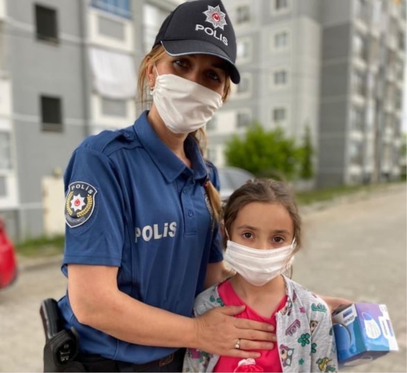 Polis, parklarda oynayan çocuklara çikolata kek ve meyve suyu ikram etti