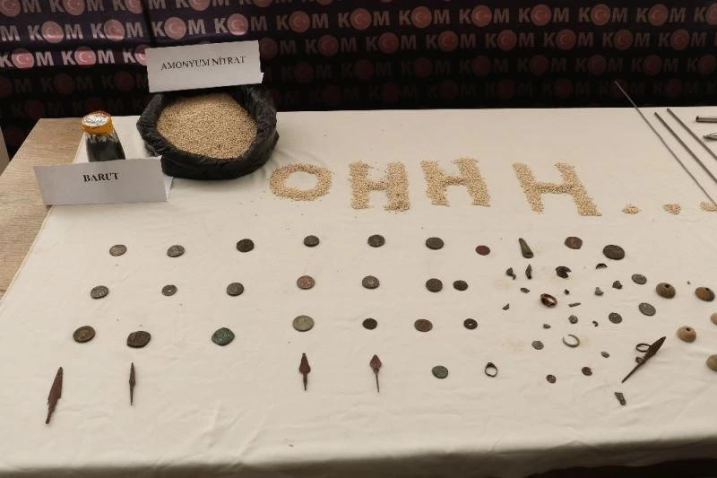 Edinilen bilgiye göre, İl Emniyet Müdürlüğü Kaçakçılık ve Organize Suçlarla Mücadele Şube Müdürlüğü ekipleri, bir kişinin kaçak olarak define aradığı bilgisini alınca çalışma başlattı. Yapılan çalışmada Dulkadiroğlu ilçesi Doğukent Mahallesi’ndeki evinde olduğu belirlenen E.D. (29), polis tarafından düzenlenen operasyonla gözaltına alındı. Yapılan aramada, 31 adet Helenistik dönemine ait, 38 adet tarihi obje ve sikkeler ele geçirildi. Bunların yanı sıra patlayıcı madde yapımında kullanılan barut ve amonyum nitrat ele geçirildi.
