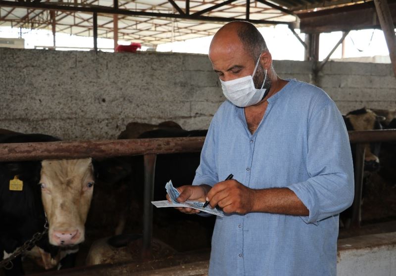 Polis, kurbanlık hayvan satıcısı Kasım Narin Gülbeyaz isimli vatandaşa sahte para ile gerçek para arasındaki farkları gösterirken kurbanlık dana alıcısı Merih Pirinçoğlu’na ise para üstü alırken dikkat etmesi gerekenleri anlattı.