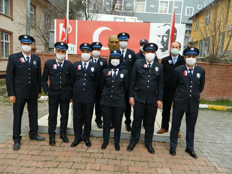 Atatürk anıtına çelenk sunumu, saygı duruşu ve okunan İstiklal Marşından sonra korona tedbirleri içerisinde İlçe Emniyet Müdürlüğünde tebrikler kabul edildi.