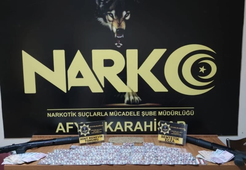 Afyonkarahisar İl Emniyet Müdürlüğü Narkotik Suçlarla Mücadele Şube Müdürlüğü’nce yapılan sokak çalışmalarında 3 ikamet ve 2 araç içerisinde aramalar yapıldı. Yapılan aramalarda; 439 adet yeşil reçeteye tabi sentetik ecza, suçtan elde edildiği değerlendirilen 3 bin 795 TL para, 2 adet ruhsatsız pompalı tüfek, 103 gram kenevir tohumu ele geçirildi.