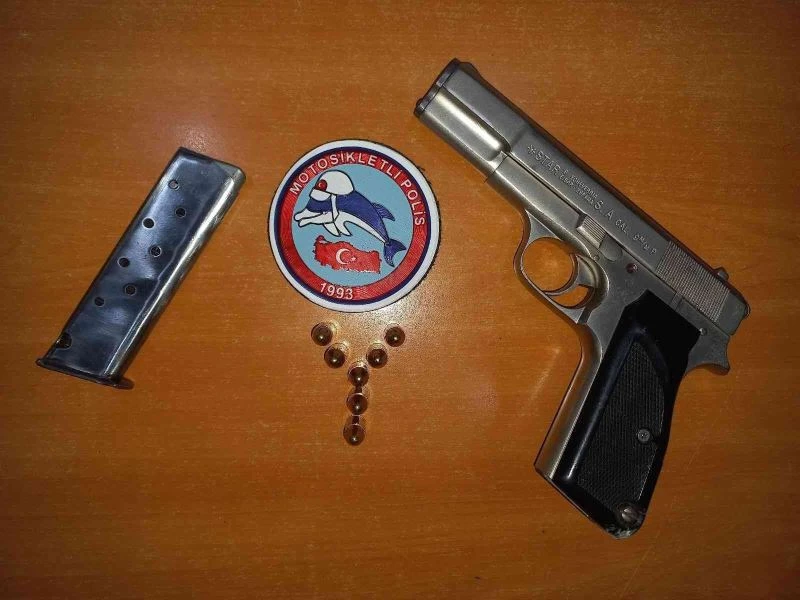 Olay, Sahipata Mahallesi Tuna Caddesi’nde meydana geldi. Afyonkarahisar İl Emniyet Müdürlüğü Motosikletli Polis Timleri, yapılan uygulamada bir aracı durdurdu. H.Ş. ve E.Ş. isimli şahısların üst araması yapılacağı esnada H.Ş.’nin koltuğu altındaki cismi pantolonunun içine sakladığını fark eden polis, silah olduğu değerlendirilen cismi teslim etmesini istedi. Polislere direnen araçtaki biri kadın 2 şüpheli, ekipler tarafından etkisiz hale getirilerek yakalandı. Kadın o sırada silahı yakındaki okulun bahçesine attı. Okul bahçesine atılan 1 adet ruhsatsız tabanca ve 7 adet tabanca fişeği bulunarak muhafaza altına alındı. Şüpheliler ise Kocatepe Polis Merkezi Amirliği’ne teslim edildi.