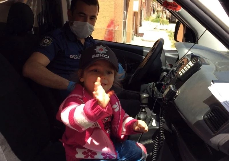 Korona virüs (Covid-19) tedbirleri kapsamında sokağa çıkma kısıtlaması devam ederken, polis ve bekçiler de görevlerine aralıksız devam ediyor. Mahalle ve sokaklarda devriye faaliyetlerini sürdüren ekipler, sokağa çıkma kısıtlamasını ihlal eden vatandaşları da uyararak evlerine gönderiyor. Eskişehir’de Tepebaşı İlçe Emniyet Müdürlüğüne bağlı polis ekipleri, Esentepe Mahallesi’ndeki devriye esnasında sokakta oyun oynayan 4 yaşındaki kız çocuğunu görerek yanına gitti. Bu esnada polis arabasını gören minik kız korkarak babasının yanına gitti. Araçtan inen ekipler, sevmek için kız çocuğunu yanına çağırsa da babasının elini bırakmayan minik kız ağlamaya başladı. Baba ‘Polislerden korkulmaz gel’ dese de ikna olmayan 4 yaşındaki kız, uzaklaşmaya başladı. Baba, korkusunu yenmek için kızının ağabeyini polisin yanına gönderdi. Ağabeyine polis şapkasını takan ekipleri gören minik kızın gözyaşları dinip, gülümseyerek yanlarına koştu. Bekçi şapkası takılan küçük kızı kadın polis memuru kucağına alarak polis arabasına bindirdi. Minik kız, polis ağabeyi ve ablası eşliğinde araç megafonuyla mahalle sakinlerine iki kez ‘evde kalın’ diye seslendi. Ardından ekipler, çocuklara ‘Artık evlerinize gidin. Bundan sonra korkmak yok’ diyerek, araçlarına binip görevlerine devam etti. Yaşadığı mutluluk adeta gözlerinden okunan minik kız ise, polis ve bekçileri arkalarından el sallayarak uğurladı.