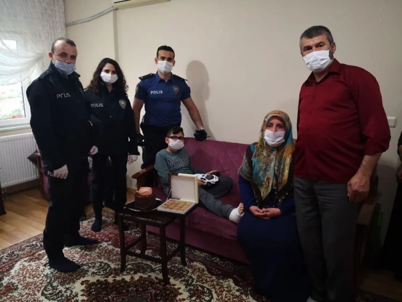 Olayı öğrenen polis ekipleri de Ö.A.K.’nin evine geçmiş olsun ziyareti gerçekleştirdi. 11 yaşındaki çocuğa tatlı götüren ekipler, aile ile bir süre sohbet ettikten sonra geçmiş olsun dileklerini ileterek evden ayrıldı.