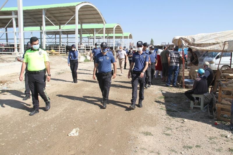 Beyşehir’de Soğla bölgesindeki hayvan pazarı ile şehrin en işlek caddelerinde Beyşehir Emniyet Müdürlüğü ekipleri Kurban Bayramı öncesinde maske denetimi yaptı. Hayvan pazarındaki denetimlerde polis ekipleri, maske takmadığı belirlenen satıcı ve vatandaşlara cezai işlem uyguladı.