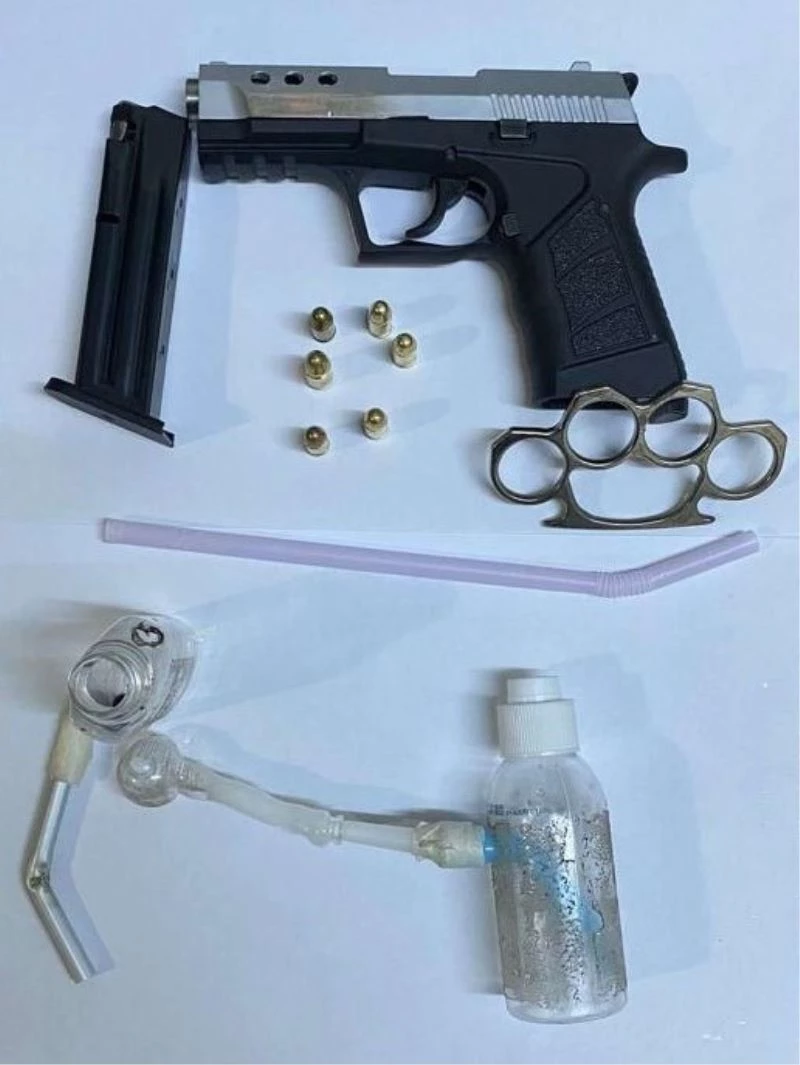 DÜZCE – Düzce’nin Kaynaşlı ilçesinde polis kontrol noktasında durdurulan araçtan bir adet ruhsatsız tabanca, 6 adet mermi, bir adet muşta ve 2 tane payp olarak tabir edilen uyuşturucu içme aparatı ele geçirildi.