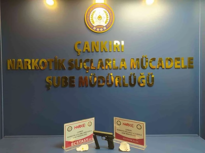 Çankırı’da polis ekipleri tarafından yapılan denetimler kapsamında bir şahıs üzerinde bir miktar uyuşturucu hap ve 1 adet el yapımı tabanca ele geçirildi.