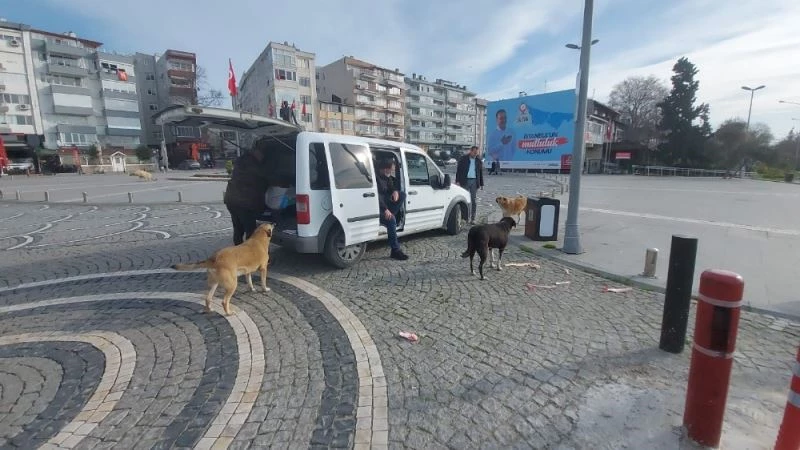Silivri İlçe Emniyet Müdürlüğü’ne bağlı sivil polis ekipleri, kısıtlama günlerinde sokak hayvanlarını unutmadı. Ekipler kısıtlama nedeniyle insan hareketliliğin olmadığı sokaklarda aç kalan sokak hayvanlarını araçlarıyla getirdikleri kemikler ve etlerle besledi. Kemik ve etleri görünce polislerin etrafında toplanan köpekler, ekiplerin getirdiği kemik ve etleri yediler.