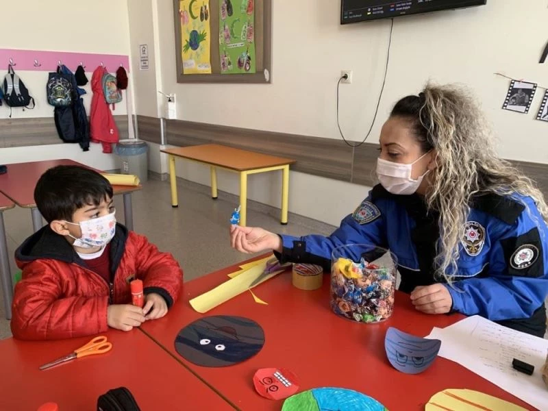 Polis, eğlenceli anlar yaşattığı minik öğrencilere, zeka oyunları da hediye etti.