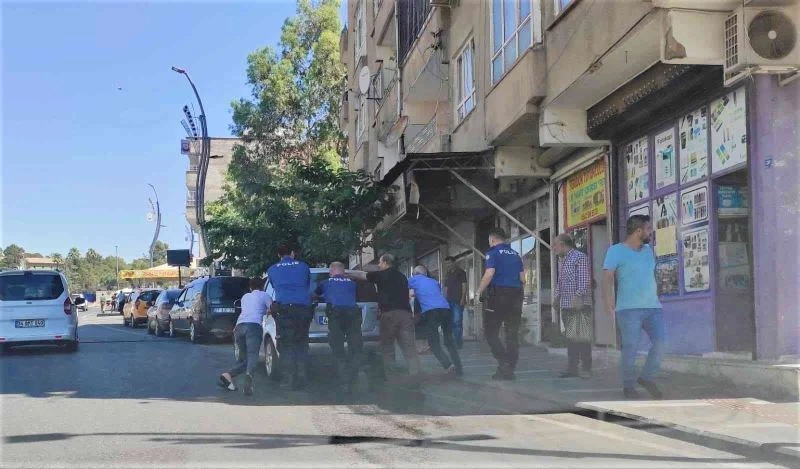 Şanlıurfa’da polisler yolda arızalanan sürücünün otomobilini iterek yardım etti.
