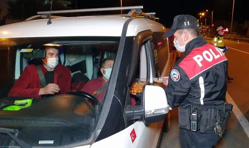 Aydın’ın Nazilli ilçesinde polis ekipleri Denizli-Aydın Karayolu üzerinde denetleme yaptı. İzin belgesi, evrak ve alkol denetiminin ardından sürücülerle yolcuların Ramazan ayını kutlayan ekipler tatlı ikramında bulundu.