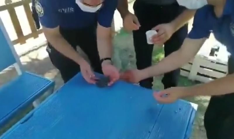 İl Emniyet Müdürlüğü Çevik Kuvvet Büro Amirliği ekipleri, şube bahçesinde yerde hareketsiz halde duran bir serçe gördü. Yerden aldıkları serçenin bitkin ve susuz kaldığını düşünen 3 polis memuru, plastik bardakla serçeye su getirdi.