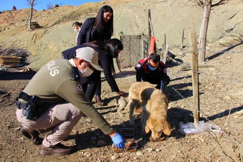 Amasya’da İl Emniyet Müdürlüğü bünyesindeki Çevre, Doğa, Hayvan Koruma Şubesi ekipleri, hayvansever vatandaşlarla birlikte sokak hayvanlarına mama dağıttı.