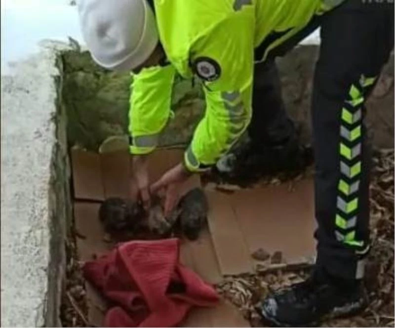 Malatya’da donmak üzere olan köpek yavrularına polis şefkat elini uzattı.