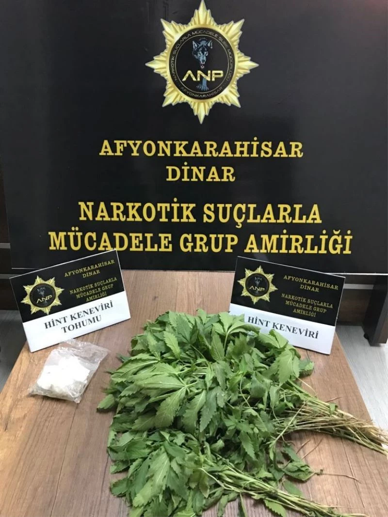 Afyonkarahisar’ın Dinar ilçesinde polis tarafından gerçekleştirilen operasyonda 69 kök Hint keneviri ele geçirildi.