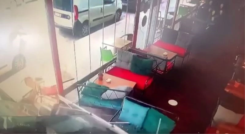 Polisten kaçan ehliyetsiz sürücü kafeye daldı; o anlar kameraya yansıdı