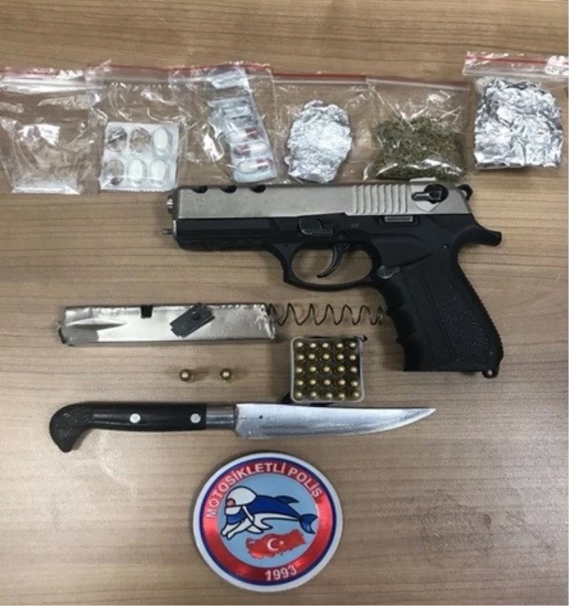 Edinilen bilgilere göre, İl Emniyet Müdürlüğü’ne bağlı Asayiş Şubesi Motosikletli Polis Timler Amirliği ekiplerince Eskibağlar Mahallesi’nde dur ikazına uymayarak kaçan bir şüpheli kovalamaca sonucu yakalandı. Şüpheli M.S.’nin yapılan üst aramasında 1 adet ruhsatsız tabanca ve 27 adet mermi, 1 adet bıçak, bir miktar uyuşturucu madde ele geçirildi.