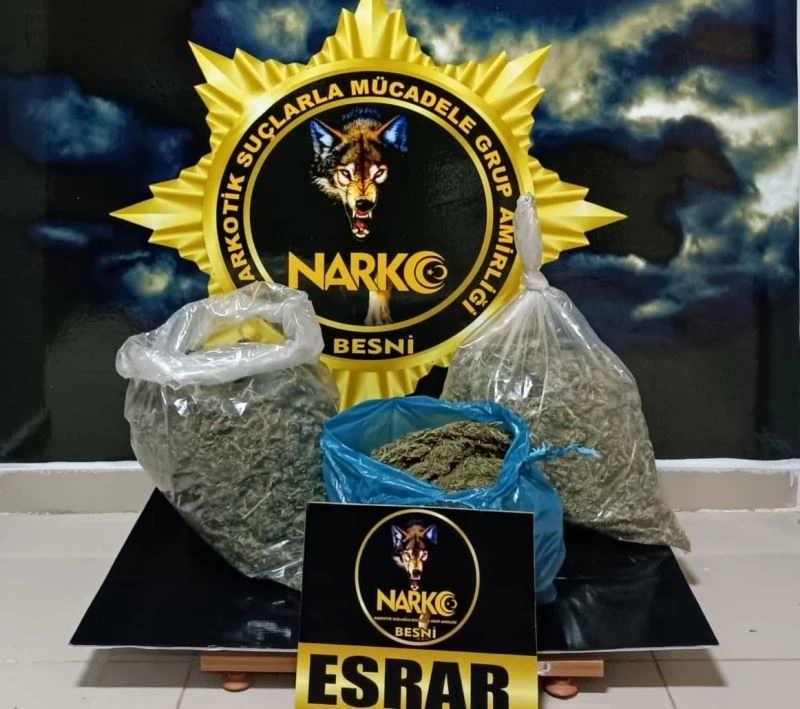 Edinilen bilgiye göre, Besni Cumhuriyet Başsavcılığı koordinesinde Besni Narkotik Suçlarla Mücadele Grup Amirliğince Gölbaşı yolu Sarhan mevkiinde yapılan denetimler çerçevesinde durumundan şüphelenilen bir otomobil durdurulmak istendi. Polisin dur ikazına uymayan araç ile polis ekipleri arasında kovalamaca yaşandı. Polis ekiplerinden kaçan 27 plakalı otomobil, Taşocağı mevkiinde yakalandı. Araç içerisinde yapılan aramalarda 5 kilogram esrar maddesi ele geçirildi, araç sürücüsü gözaltına alındı.