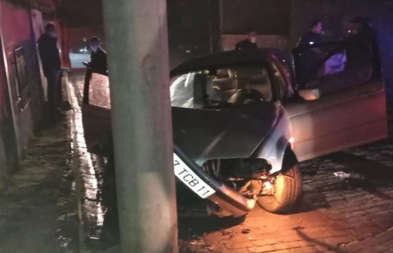 Aydın’da sokağa çıkma kısıtlamasında polisin dur ihtarına uymayıp kaçan otomobil direğe çarparak durdu.