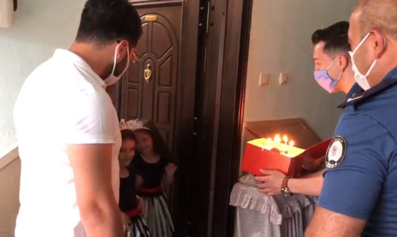 Polisten korkan ikizlere polislerden doğum günü sürprizi