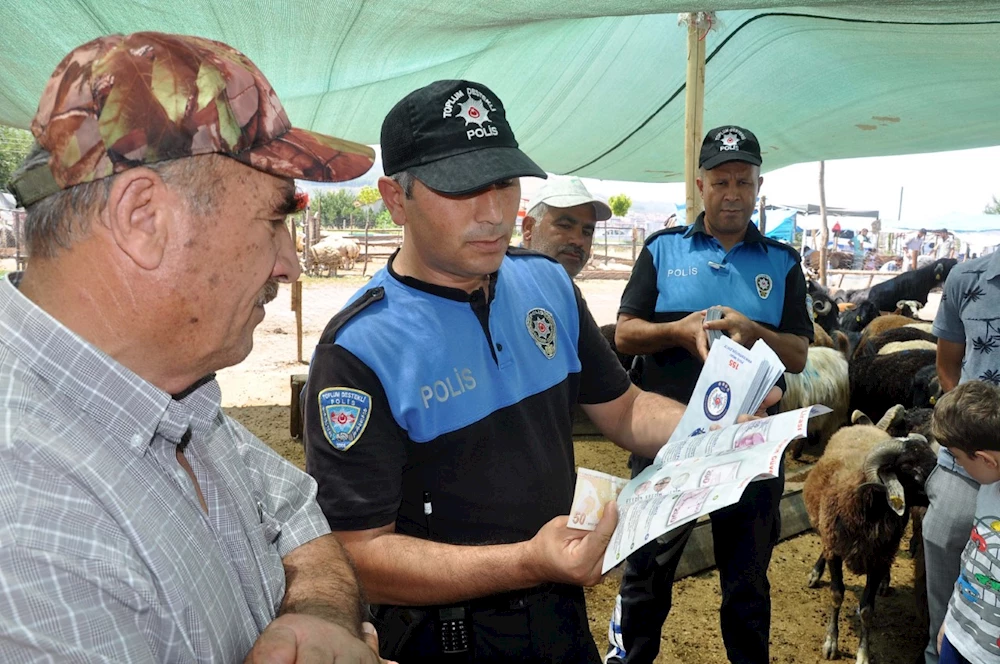 Özellikle, sahte para, tırnakçılık, kurban hırsızlığı, yankesicilik ve dolandırıcılık konularına dikkat çeken polisler, kötü niyetli kişilerin özellikle yoğun ve kalabalık ortamları seçtiklerini belirterek, mağduriyetlerin yaşanmaması için çaba gösterdiklerini ifade ettiler. Hayvan hırsızlığı ve sahte para olaylarına karşı alınacak tedbirlerle ilgili besicilere pratik bilgiler veren görevliler, "Ücretinizi almadan hayvanlarınızı teslim etmeyin. Şüphelendiğiniz araçların plakasını alın ve satış yaptığınız kişilerin isimlerini ve numaralarını kaydedin. Özellikle akşam vakitlerinde hırsızlık olaylarına karşı duyarlı olun. Yanınızda yada kaldığınız yerde nakit para bulundurmayın. Her türlü şüpheli durumu zaman kaybetmeden 155`i arayarak polise bildirin. Ekiplerimiz sizlerin güvenliği için sürekli devriye halindeler ve sizler de şüpheli durumlarda bizleri aramaktan çekinmeyin." diye uyardılar.