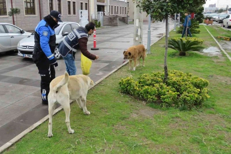 Hatay İl Emniyet Müdürlüğü görevlileri sokak hayvanlarına mama ve su desteğinde bulundu.