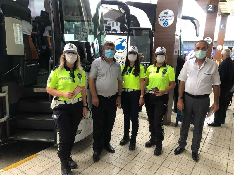 İl Emniyet Müdürlüğü Trafik Denetleme Şube Müdürlüğü personeli, şehirlerarası otobüs terminalinde, sürücülere yönelik faaliyetlerde bulundu. 18 otobüs şoförüne ve otobüste bulunan yolculara “Mevsim şartlarının gerektirdiği kurallar ve emniyet kemeri" konularında bilgilendirmede bulunan ekipler, kendilerine hayırlı yolculuklar diledi.