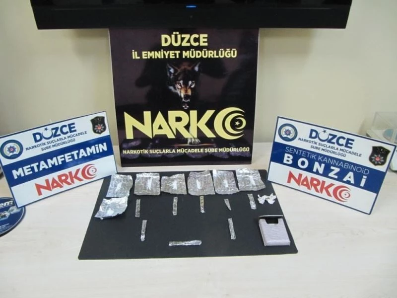 DÜZCE(İHA) – Düzce İl Emniyet Müdürlüğü Narkotik Suçlarla Mücadele Şube Müdürlüğü ekipleri yaptıkları operasyonda satışa hazır vaziyette 15 fişek halinde toplam 10 gram Metamfetamin maddesi ve bir miktar Sentetik Kannobinoid maddesi ele geçirildi.