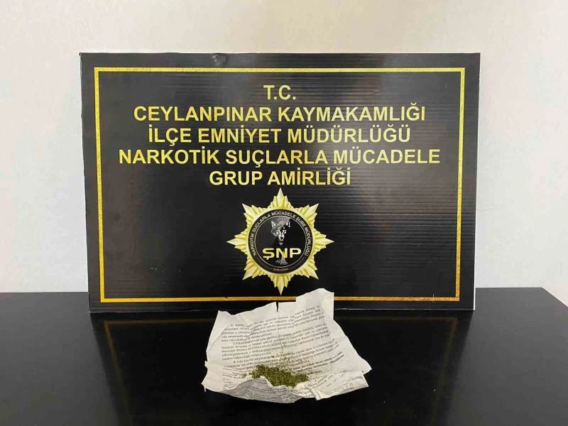 Edinilen bilgiye göre, Ceylanpınar İlçe Emniyet Müdürlüğü Narkotik Suçlarla Mücadele Büro Amirliği ekipleri, uyuşturucu satıcılarına yönelik çalışma yaptı. Yapılan çalışmada uyuşturucu tacirlerinin mekan olarak kullandığı Yenişehir Mahallesi’ndeki ilçe mezarlığına operasyon düzenleyen ekipler, Musa Ç., isimli şahsı yakalayarak üst araması yaptı. Yapılan aramada kağıda sarılı vaziyete 4 buçuk gram esrar maddesi ele geçirildi. Gözaltına alınan şahıs ifadesinde esrar maddesini mezarlık içerisinde Suphi Ç., isimli şahıstan satın aldığını söyledi. Suphi Ç., isimli şahsın ikametine de baskın düzenleyen ekipler, kağıda sarılı vaziyette 4 gram esrar maddesi ile sera olarak kullandığı bölmede 4 kök kenevir bitkisi ele geçirdi.