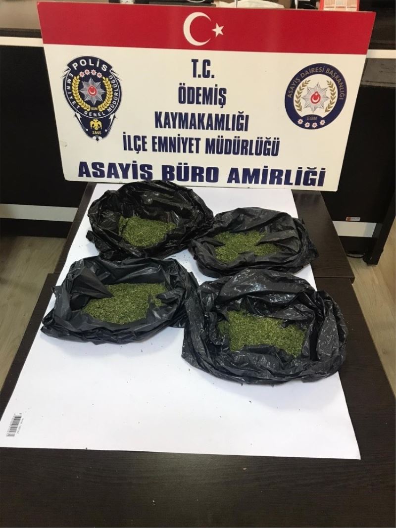 Ödemiş İlçe Emniyet Müdürlüğü Asayiş Büro Amirliği ekipleri, ilçe genelinde yapılan uygulamalar esnasında elinde siyah poşetler taşıyan A.K. isimli şahıstan şüphelendi. Şahsı durdurarak poşetlerin içerisine bakan ekipler, 4 adet siyah poşet içerisinde esrar maddesi olduğunu fark etti. Hassas terazide yapılan ölçümde poşet içerisindeki uyuşturucu maddenin 120 gram olduğu belirlendi. Öte yandan ilçede yapılan uygulamalarda şüphe üzerine durdurulan S.İ. isimli şahsın üzerinde de ruhsatsız silah ve mühimmat ele geçirildi.