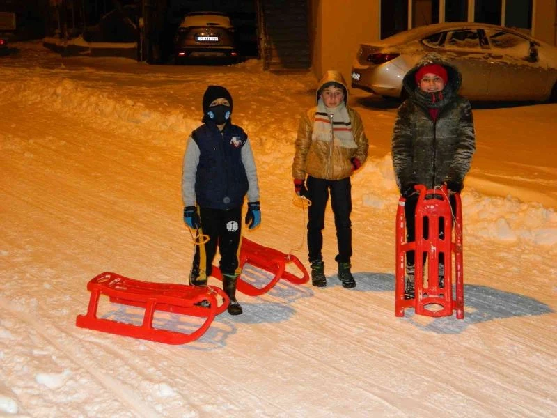 Posof’ta kar yağışı hayatı olumsuz etkilerken çocuklar karın tadını çıkardı. Akşam kızaklarını alan çocuklar karda kayarak eğlencenin tadına vardı.