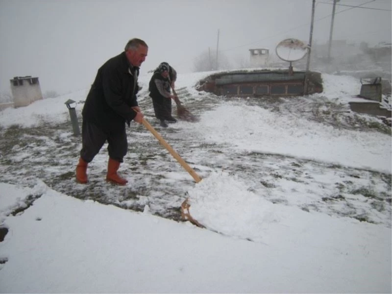 Posof ilçesinde etkili olan kar yağışı ve soğuk hava nedeniyle bazı köy yolları ulaşıma kapanırken vatandaşlar evlerinin önünü küreyerek açtı.