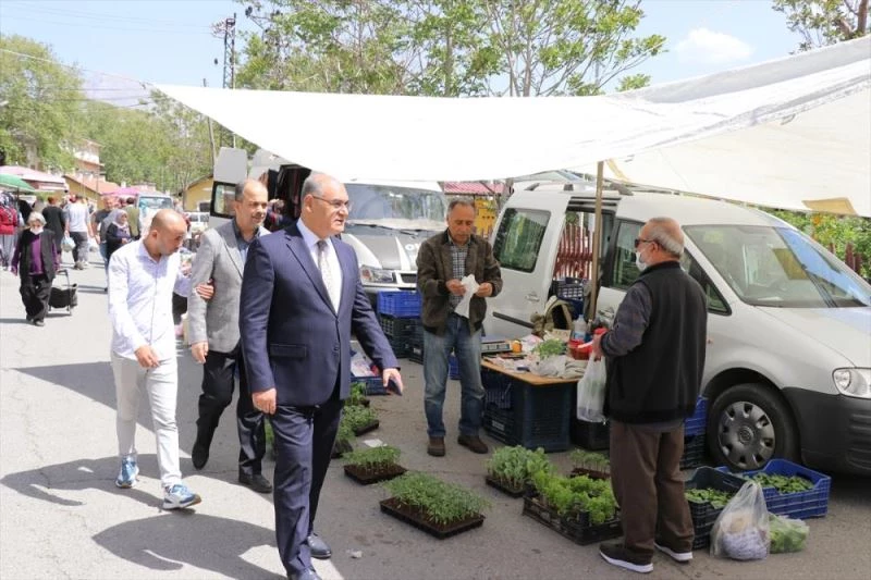 Çay, ilçede kurulan pazar yerlerini ziyaretinde kuralların uygulanıp uygulanmadığını kontrol etti, pazar esnafı ile buluştu, sohbet etti.
